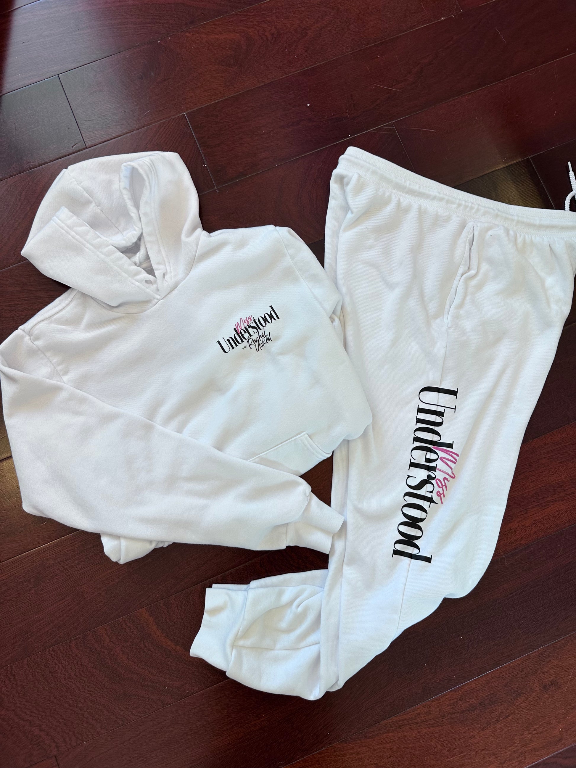 The Miss Understood sweatpants by Rachel Uchitel combine comfort and style with practical features like side pockets, a white cord drawstring, and cuffed bottoms for a snug fit. Designed with side seams and a tear-away label, these sweatpants provide a sleek, tailored look and added convenience. Aligned with our commitment to sustainability, these sweatpants are produced using Blue Sign certified dyes and in dye houses that follow California's stringent EPA regulations for wastewater treatment and usage. The cutting facilities in Los Angeles are partially powered by solar energy and incorporate comprehensive recycling programs for paper waste and fabric scraps. Made from a cozy blend of 52% combed and ring-spun cotton and 48% polyester fleece, with a weight of 8 oz. and 32 singles, these sweatpants offer a soft, premium feel that is perfect for both lounging and active wear.
